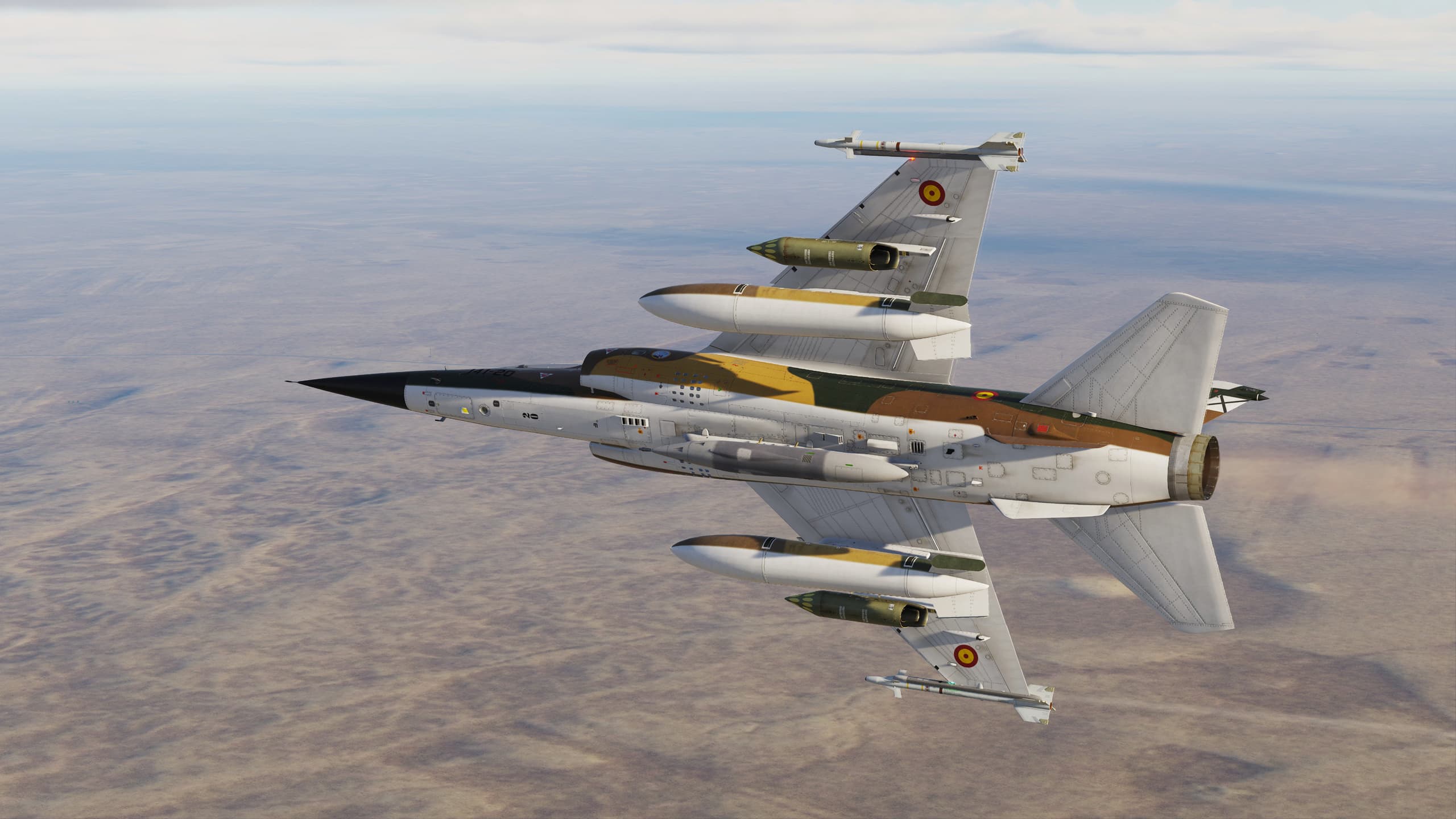 In DCS World, the Mirage F1 is able to carry a gun pod on its centerline pylon; however, this capability is not implemented in War Thunder. In War Thunder, equipping the Mirage F1 with a gun pod requires sacrificing at least one Matra 530F missile, which feels very awkward.