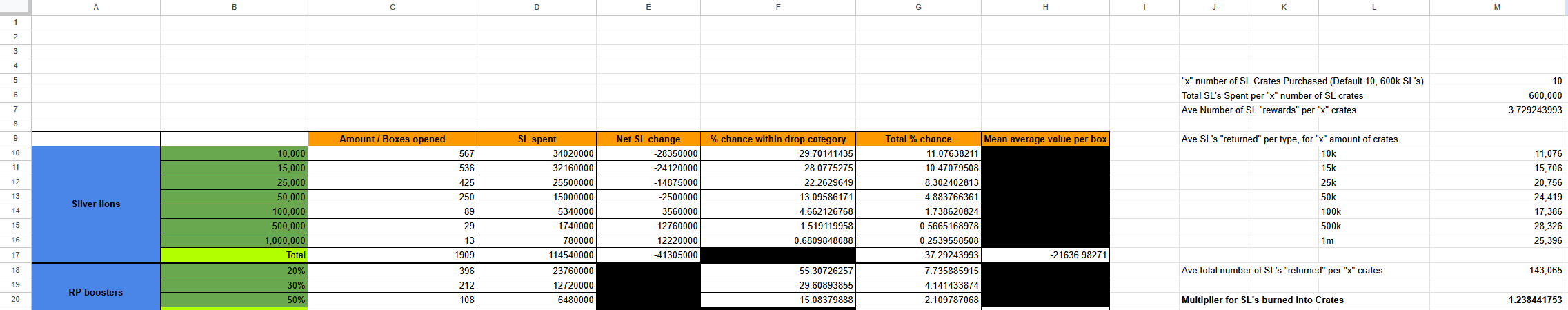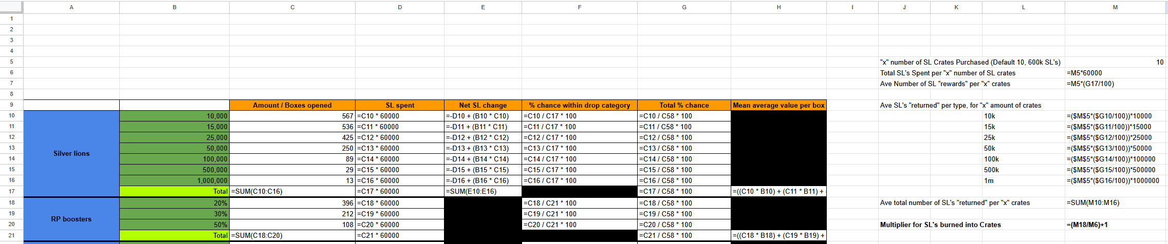 Total SL's Spent per "x" number of SL crates =M5*60000