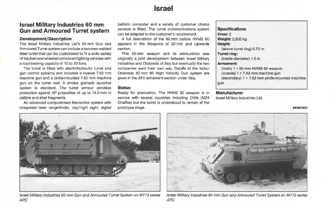 As of the launch of the Dev Server for upcoming update “Spearhead”, the Israeli tree will be receiving the first Bardelass M113 IMI prototype fitted with a unique turret and 60mm HVMS gun, co-developed between OTO and IMI. After the collaboration fell through. The first prototype featured a magazine fed autoloader, stabilizer, and access to IMI 60mm APFSDS shells. This prototype unfortunately never went anywhere, but the turret and ammunition found use elsewhere in foreign service. IMI later made a second prototype with a different turret and autoloader of 28 rounds, rather than the 6 this one has.