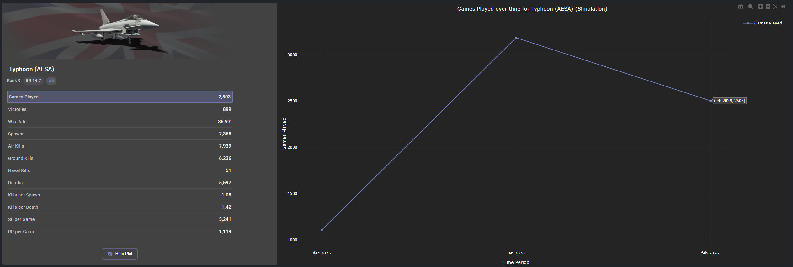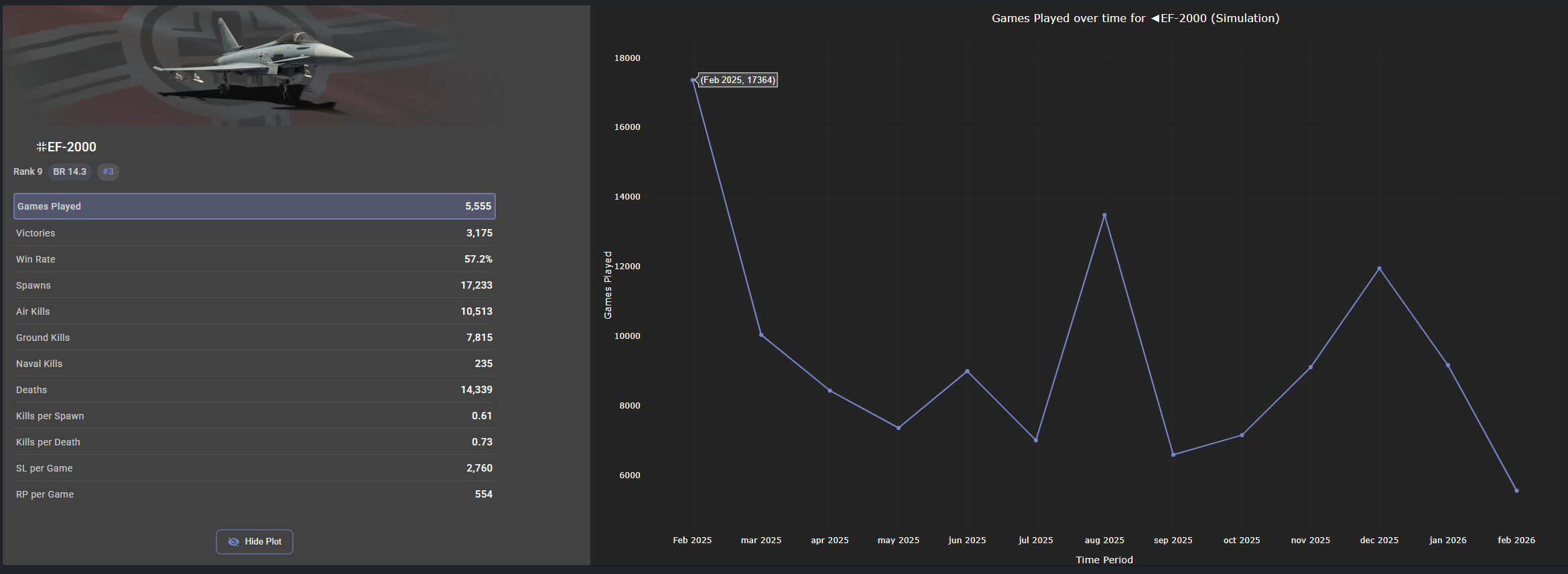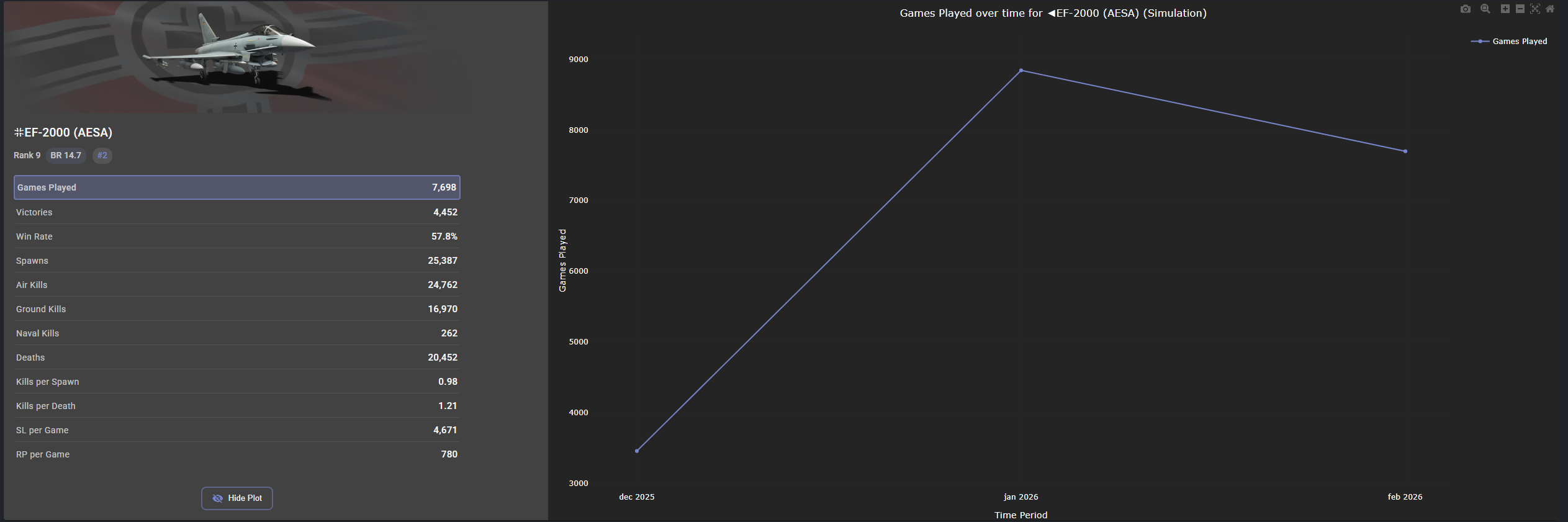 Compare this with the 7,700 games played in Feb. 2026 with the German Eurofighter AESA.