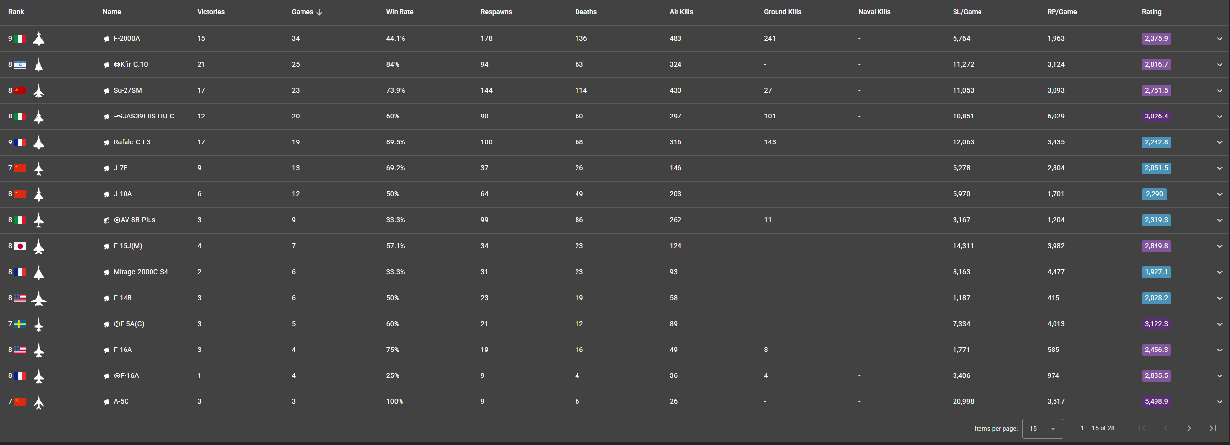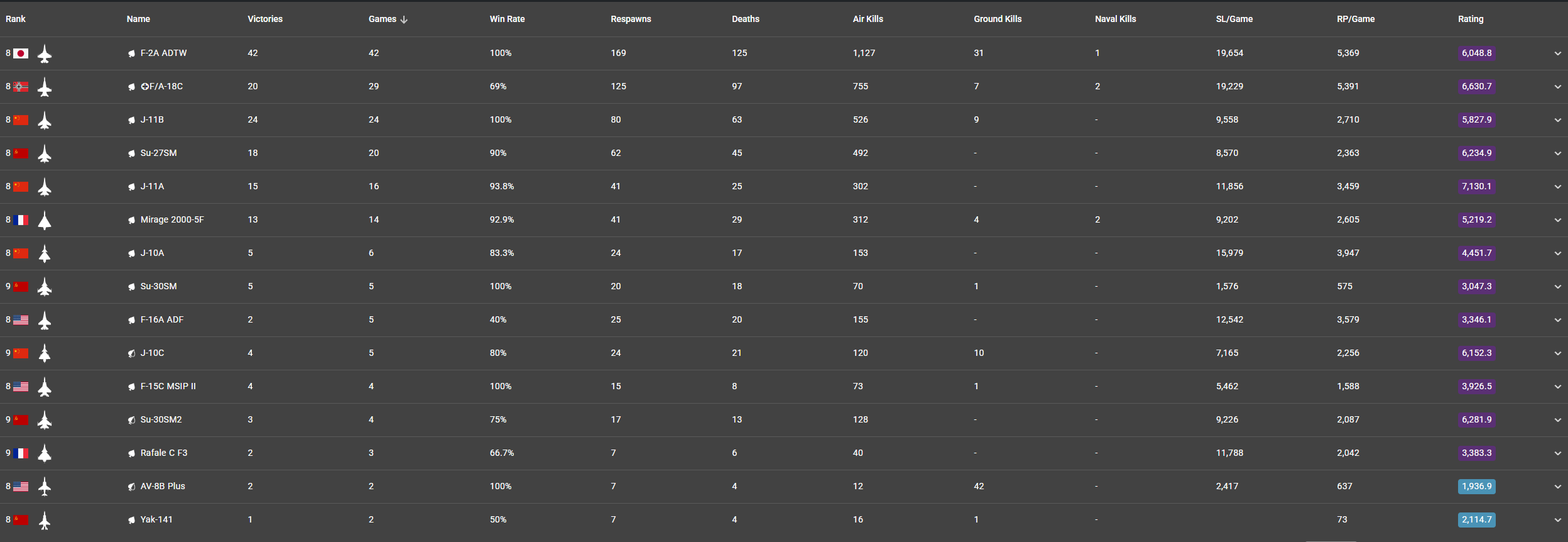 It is not hard to figure out what top tier looked like a year ago based on the old brackets and what planes were in the game. Just by not counting Su-27SM and Su-34 in your figures is leaving out around 46,000 games in your figure. It is only recently that there has been a 13.7 or 13.3 bracket.