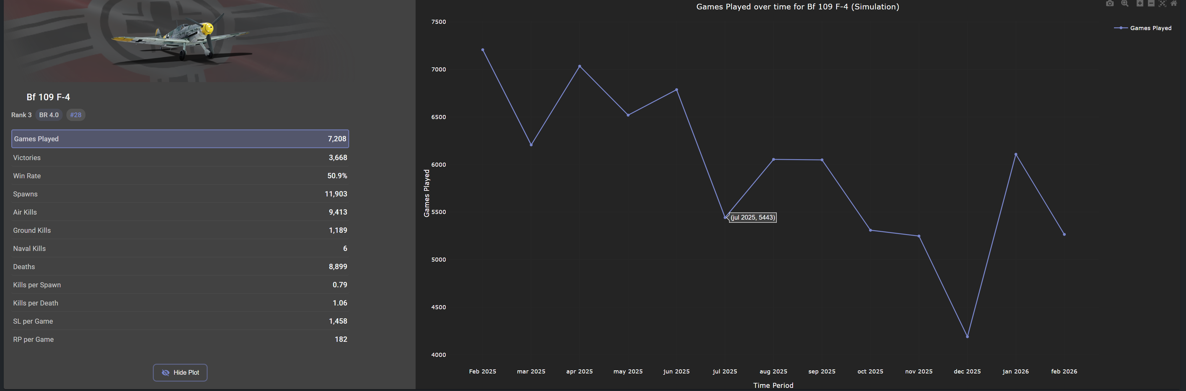 Your eurofighter example doesn’t do much. even a insanely popular plane like the bf-109 f4 is trending down. you cant extrapolate this into a causal conclusion