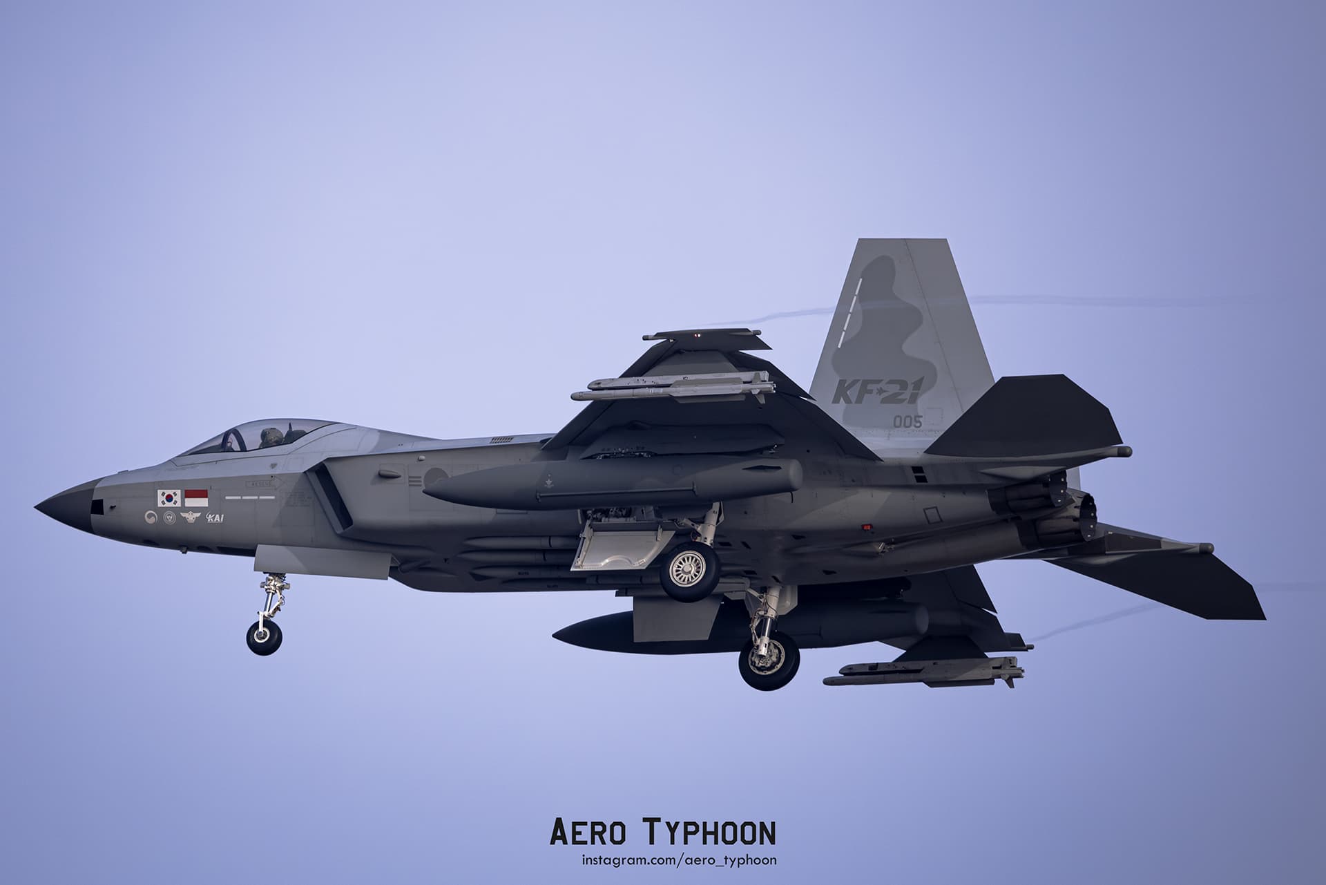 Designed to fulfill the requirements of structural strength and durability to withstand high maneuvering loads in transonic and subsonic ranges, the KF-21 secures excellent combat maneuverability through high lift-to-drag ratio in a wide flight envelope, enabling performance of various missions with high angle of attack characteristics. Smaller than the F/A-18E/F while using the F414-GE-400, the KF-21’s thrust -to-weight ratio is more comparable to the Eurofighter Typhoon. The KF-21’s wing loading is lower than the F-35 while maintaining similar thrust.