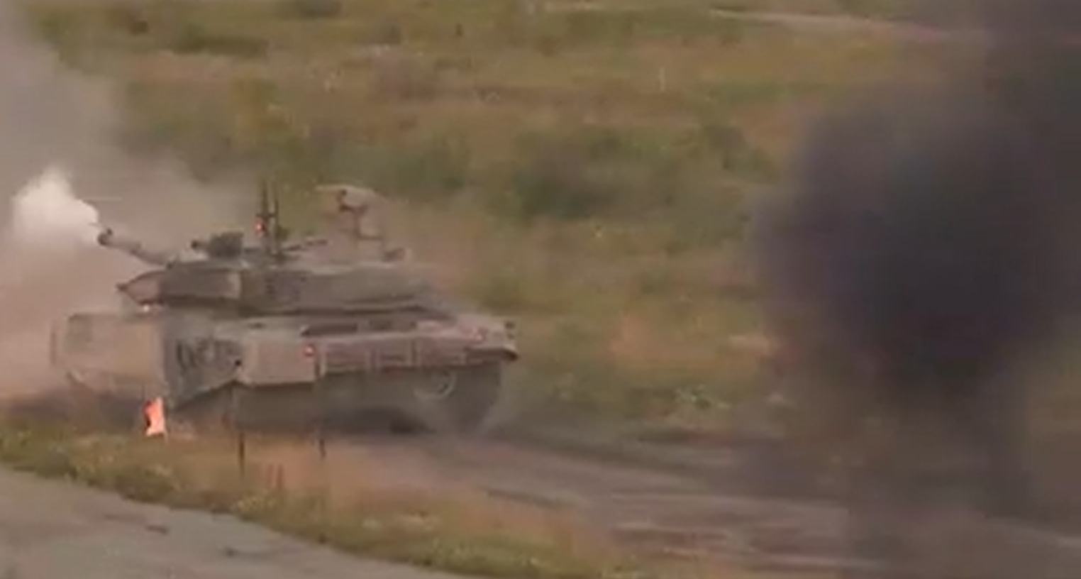 Tank firing on the move at 40 km/h, one shot, AP ammunition.