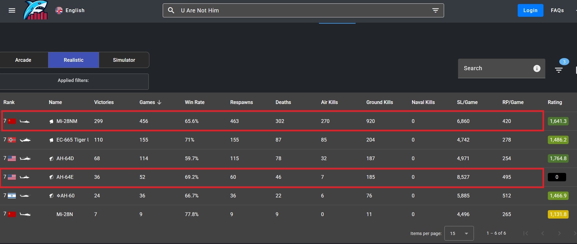 He also has exceptional stat on AH-64E 3.0 K/D ill wait until dust settles and stat will show something informative.