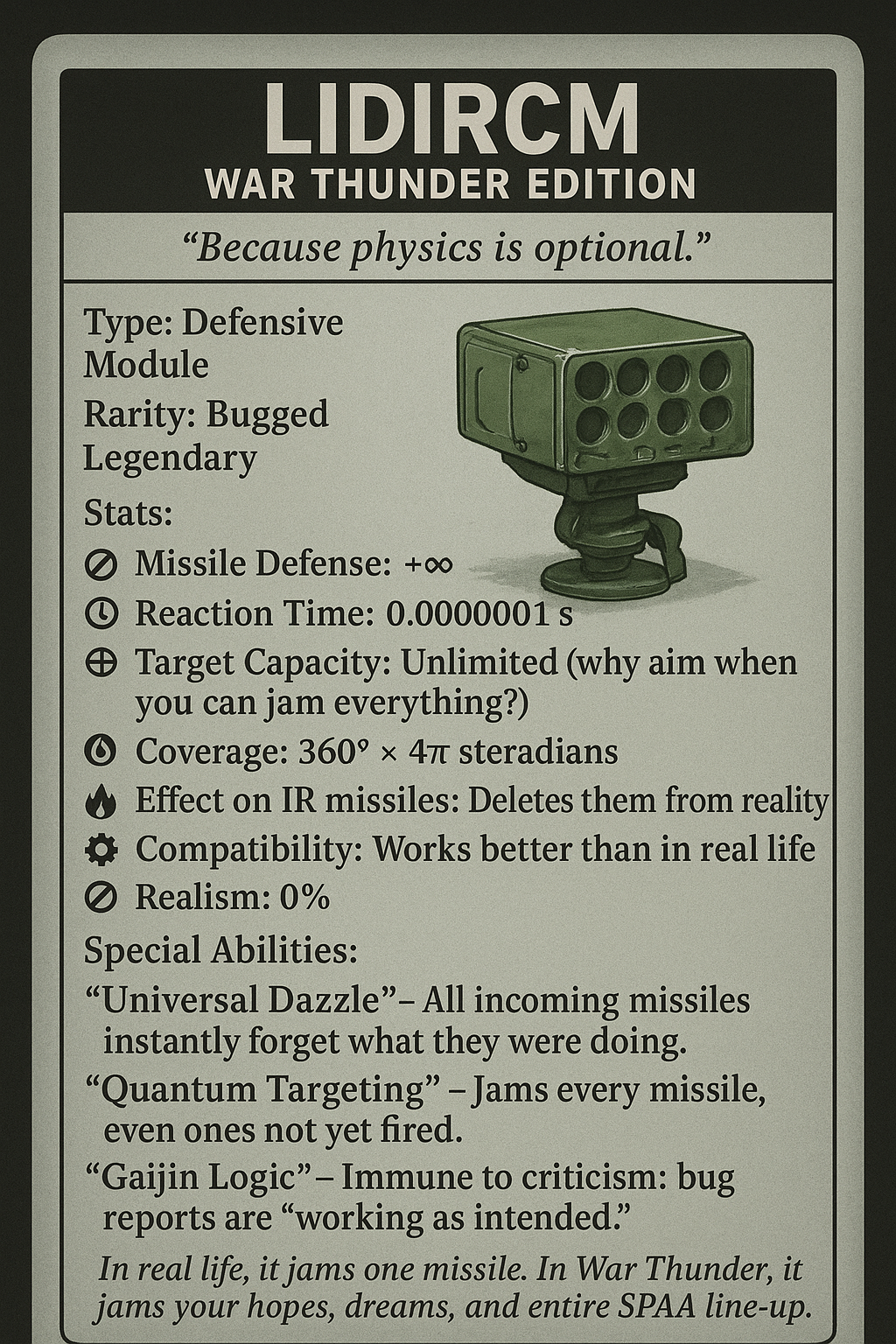 Also, the amateur implementation of liwhatever in game killing ir missiles like some magical force field wasn’t a thing then either.