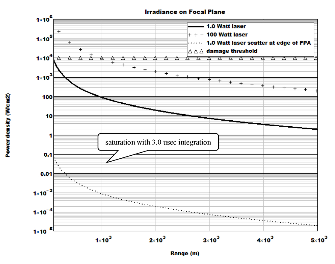 The conclusion indicates that the laser will have to damage not dazzle to defeat the image sensor as the rest of the tests were all done with the assumption of a 1-10W laser.