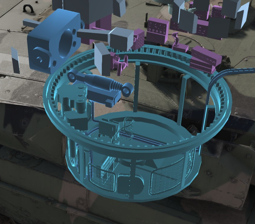 Different treatment by Devs for reasons. When this pathetic alu plate / basket is hit by even a single spall element, it jams ingame. While that massive russian autoloader structure won’t harm traverse. Ru tanks also don’t seem to have power lines and stuff like this. Their ingame turret drive is invisible and likely using “vakuum engergy”^^