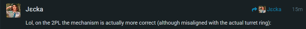 Lol, on the 2PL the mechanism is actually more correct (although misaligned with the actual turret ring):