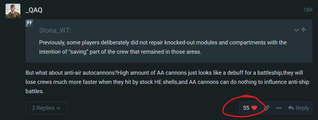 This ‘solution’ from what i understand form the post and a few videos I have seen this is designed to melt crew and force the pace of naval so battles are much shorter with quicker easier kills, which will really suck with the some times 10min wait just to get in a game with 4 people. It also feels like its meant to dumb naval down to an even more mindless skill less mode to either, appease the tank/air folk who only play naval for battle pass things. To attempt to make it more inviting for new players which they should keep it to arcade if thats the case. Or just because people would buy top tier premiums and get roasted because they dont understand the meta/mechanics.