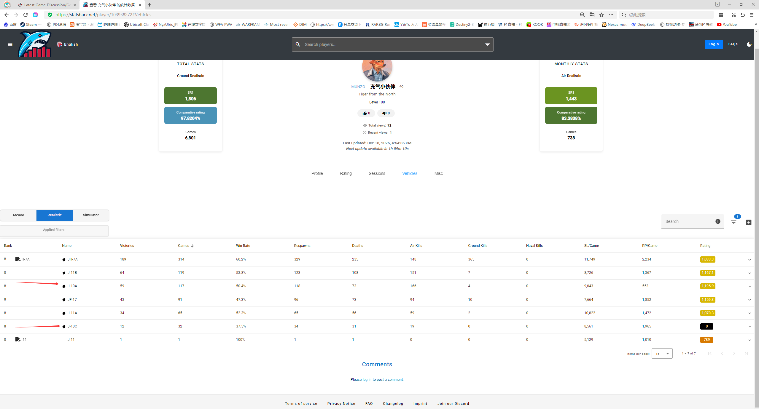 Here are the performance stat screenshots for both of my j-10 variants so far.