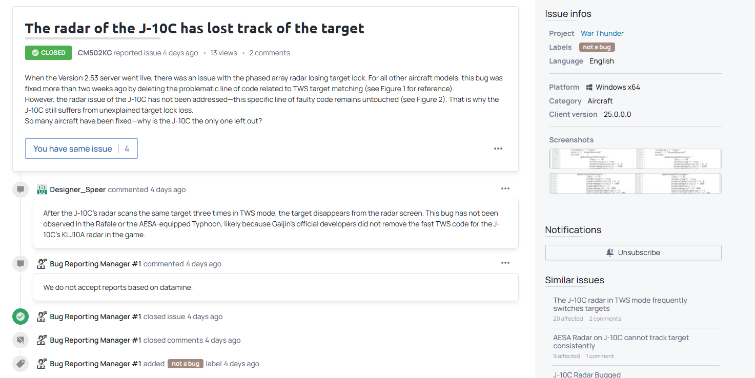 “Hey, devs are aware of the current state of the plane. There are some planned changes to the J-10C.”