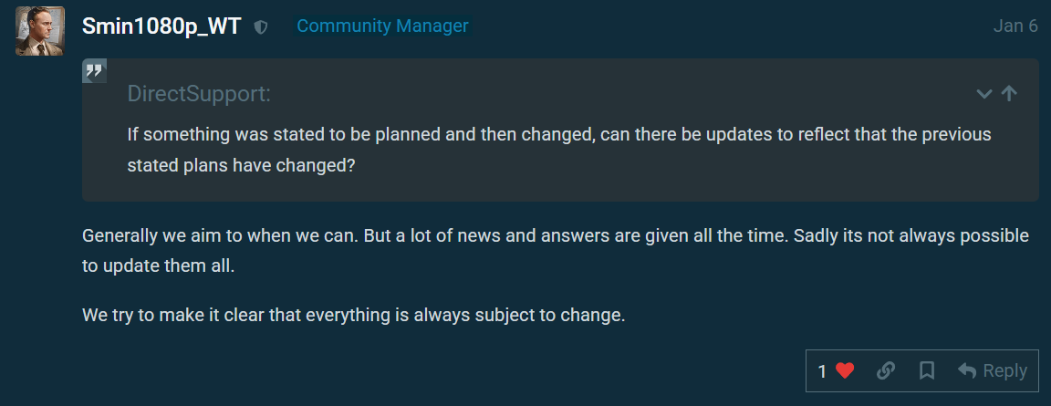 Yup, and if there’s something planned and it ends up being changed or canceled, then oh well it’s not always possible to update the community and everything is subject to change.