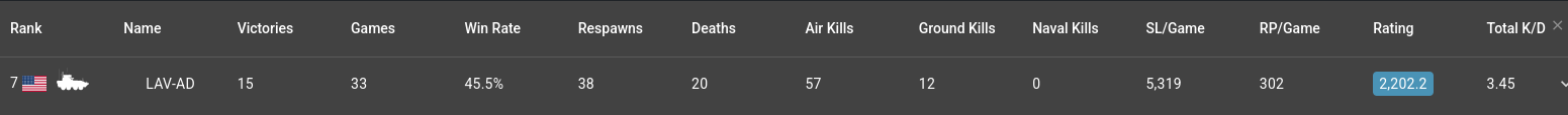 Considering SPAA could respawn over 4 times in the game, and most of the time the CAS could only respawn 1 time, at least allow CAS to carry some less lethal munitions, such as some rockets(RP3 and HVAR), high pen rounds without brust charge(N37, mk103 API,) and small bombs(like 100kg bombs, even not 500lb bombs), this change could make like Britsh, Italy, Sweden, Germany could able to respawn 2 times of CAS to reduce the advantages from Russia or USA