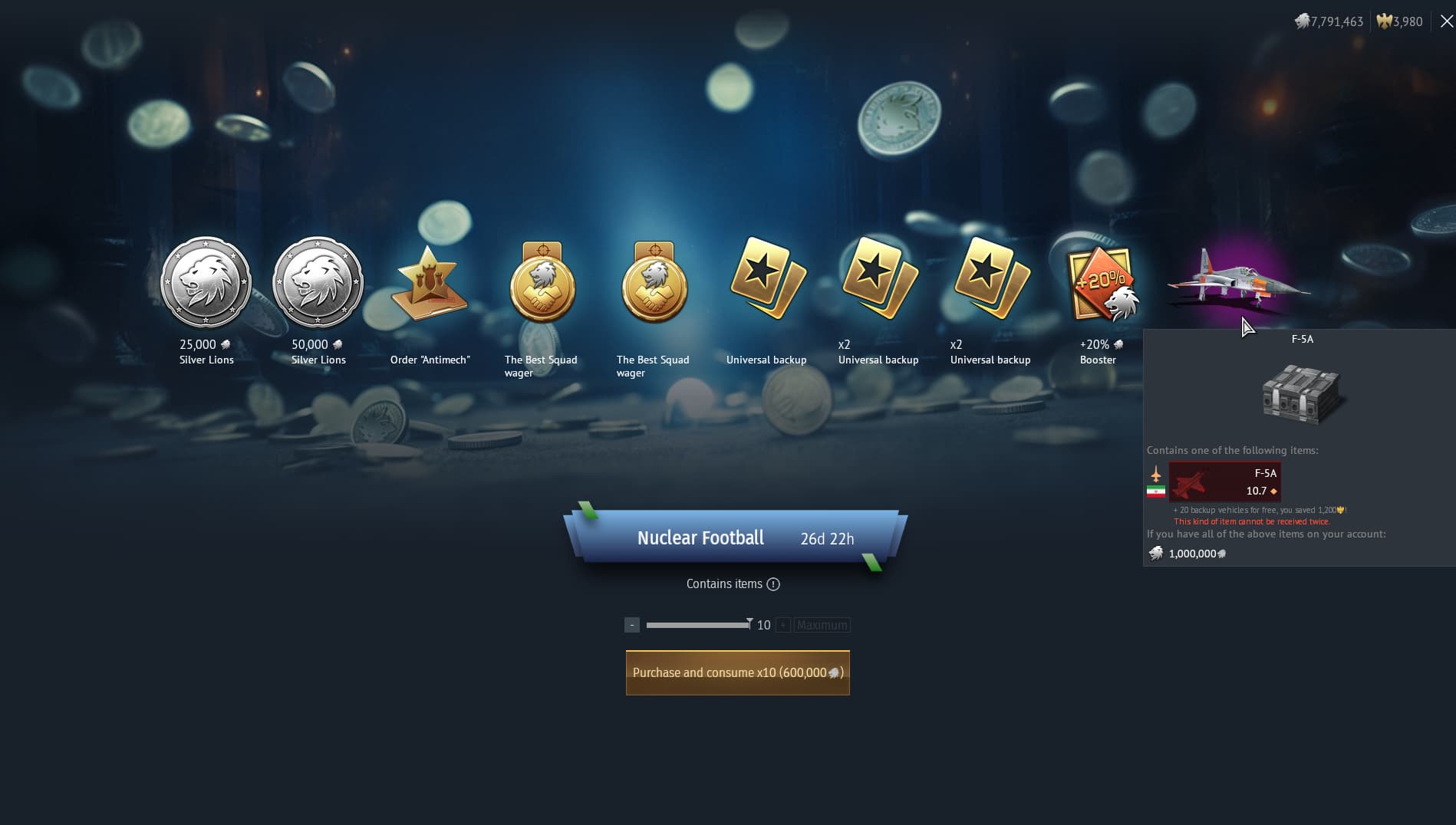 SO! Just in case you did not know yet, premium vehicles DOUBLE the effect of SL boosters! (As well as doubling the SL % boost from Premium Time.) During the SL Crate events I can make as many or MORE SL’s than I did in the previous 2-3 months. If you really really want to push the SL crates, I would highly suggest getting premium time. I just get the 180 days of prem time 2x a year when it goes on sale for 50% off, only $20. $40/year, or $3.33/month. (If you don’t already have prem time, and don’t mind spending a little, you could get like 1 month for the crate event, and then get the 180 day thing off webstore during the Anniversary sale.) It is NOT on sale right now, so $40. But on 50% sale drops to $20: Gaijin.Net Store - Premium account for 180 days
