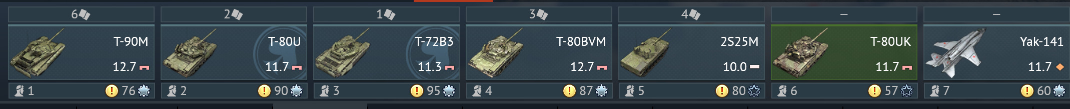 If we were to specifically look at the 12.7 MBTs per nation (putting aside whether they should be 12.7 or not), Germany has 3, Sweden has 4, and France has 5. Everything has two, or in the case of Israel have one. The T-80Us, T-72B3s, and T-90A remain viable even at top tier as well, much like other non 12.7 vehicles in other nations. I’d argue both the T-80BVM and T-90M are competitive, but the T-80BVM is less-so than the T-90M I agree, although I don’t believe the disparity is extreme. It’s a viable lineup regardless, just like all the other nations. It could use with some more higher rank MBTs for sure, but it’s not a garbage lineup without them.