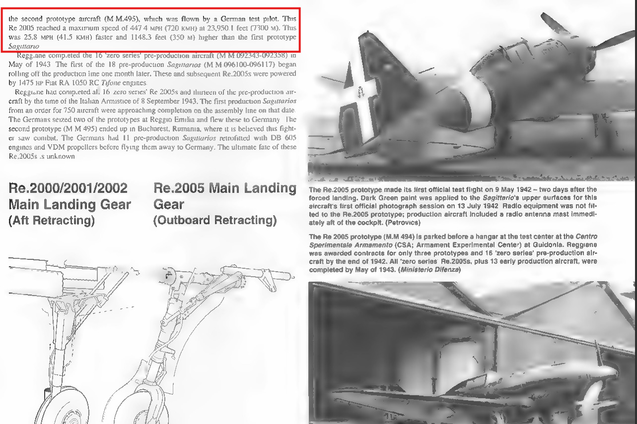 In conclussion Re.2005 VDM fly like early version MM495 with limited engine power and Piaggio propeller. We need info about June 1943 trials(Reichlin or Guidonia) or about instalation MW50.