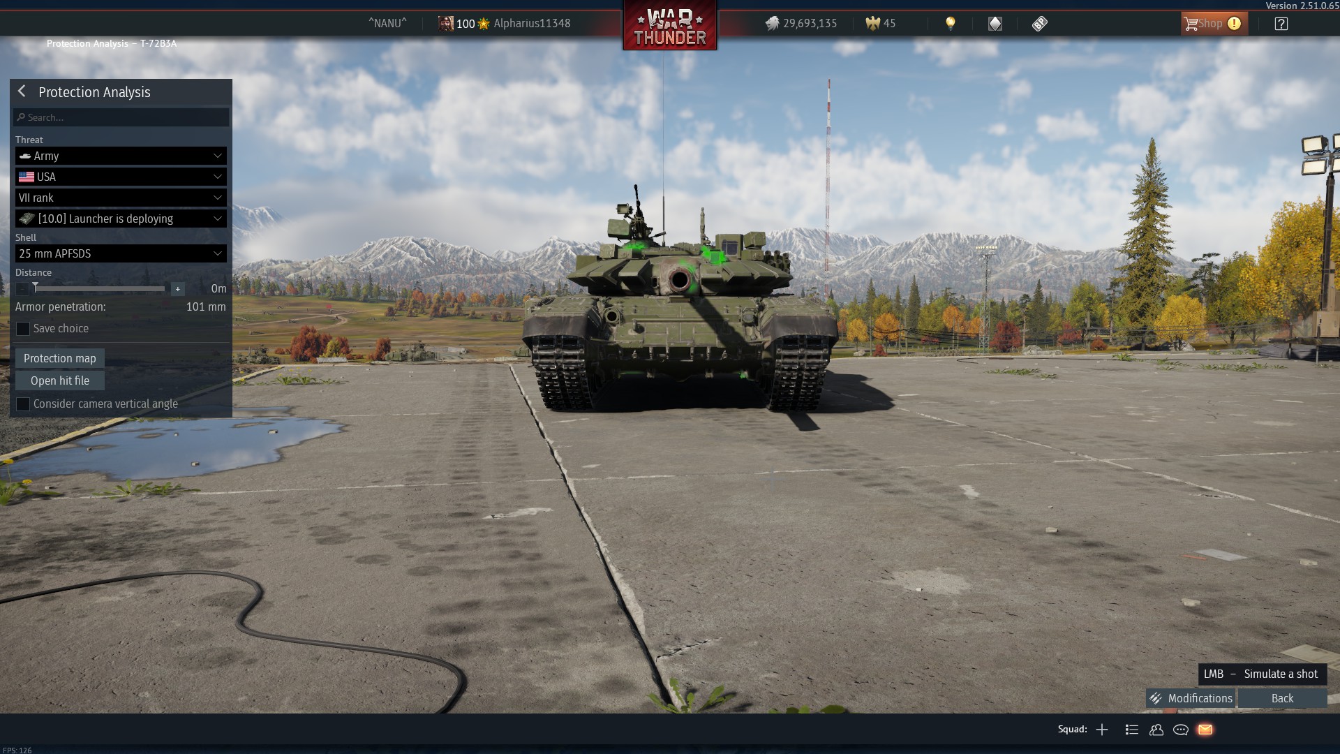 Go into the hangar and test the T-90M’s armor against Bushmaster APFSDS rounds. You’ll see there are no vulnerable spots at all.