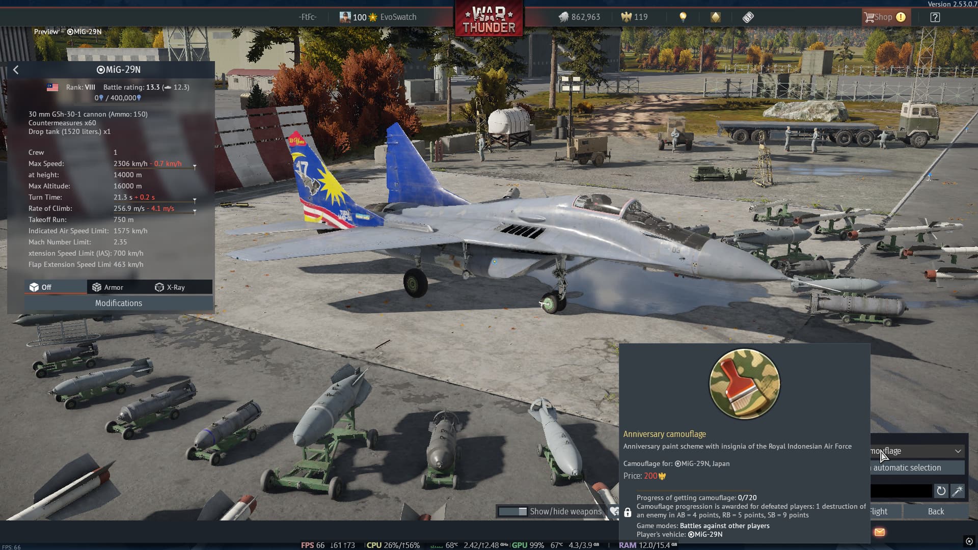 Not even true. It has a different model (refuel probe) and is a MiG-29SD equivalent, something we don’t have in game. It has different armament to other 9.12 while having different avionics than both 9.12s and SMT.