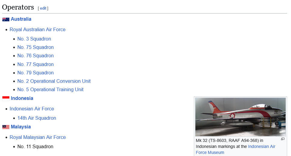 Why on earth would an Australian modified USA jet armed with British ADEN cannons and powered by a British Rolls-Royce Avon engine go into the Japanese/ Malaysian tree?