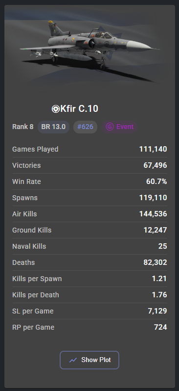 yeah kfir change is also ridicioulus, the plane is already mediocre at 13.0 and under normal circumstances i’d say move it to 12.7 if not for the fact that it has FOX3s.