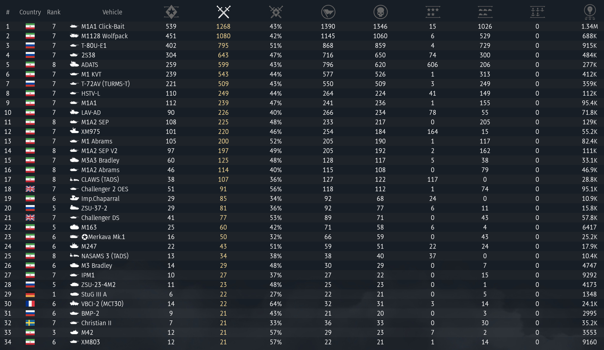 You don’t have any public statistics available. As Gaijin herself said, Statshark and others can’t control data, don’t know the difference between bots and players, among other problems.