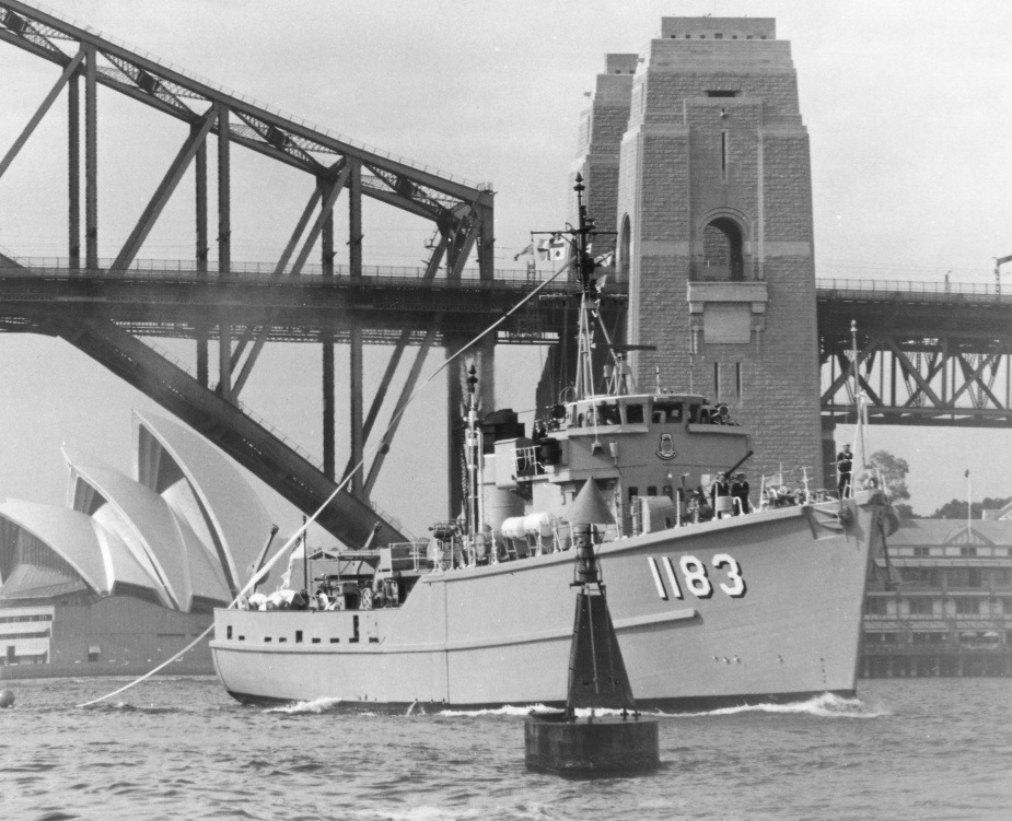 Upon commissioning she would join the 16th Mine Countermeasure Squadron, which was formed out of all six of the RAN’s Ton-class, they would sail for Sydney, arriving there on the 7th of December 1962. She would initially conduct routine exercises and maintenance around Australian waters until the 20th of September 1963. Where she and her sisters would deploy to Bougainville to clear a channel in the Tonolei harbour. During this deployment they would visit Singapore and Port Moresby.