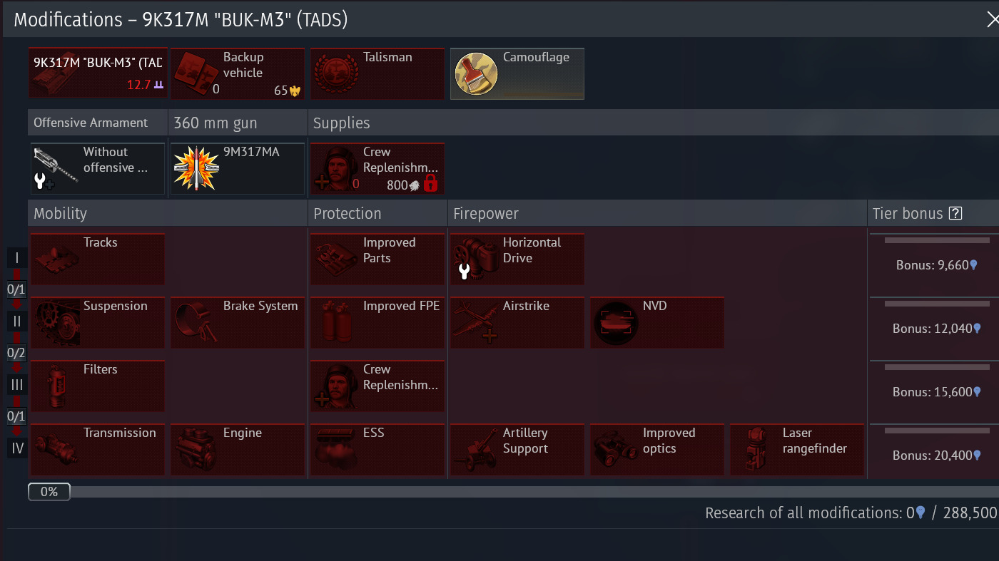 BUK-M3 - 288k, range finder and artilery are useful