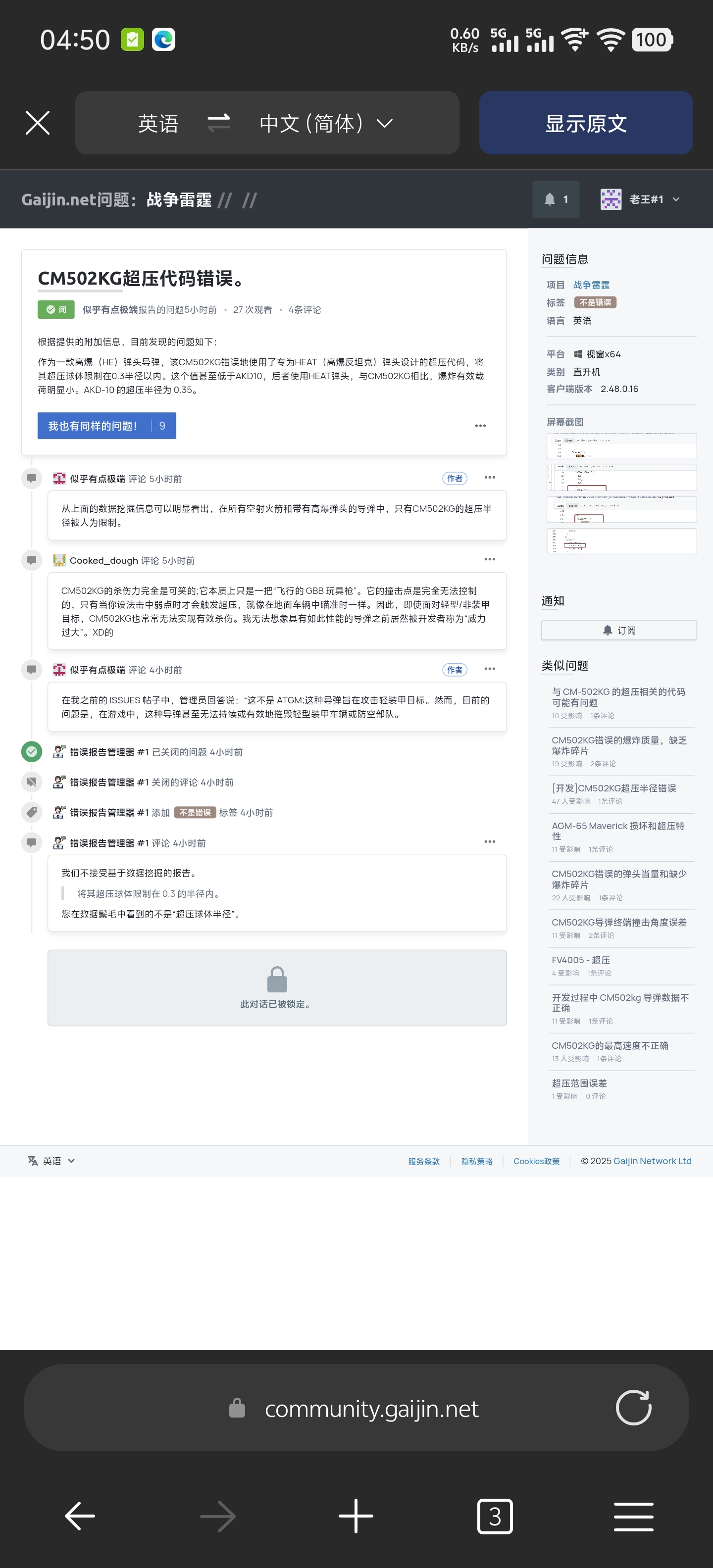 以下图片大家可以去看看人家交的issue有多简单有快通过,没必要费劲巴力的,战争雷霆制作组随意制作中系载具,都有数据挖掘居然一个认可一个不认可,我一度怀疑可能是我精神分裂了,哦对毕竟是强到影响平衡的cm502kg