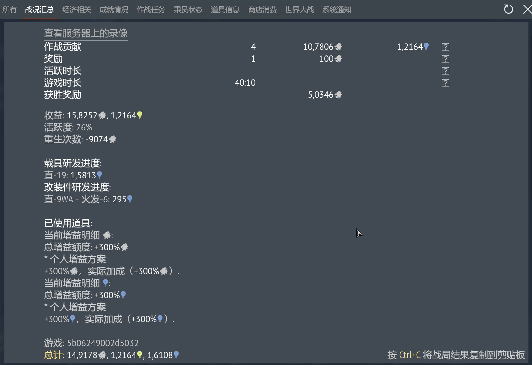 再打一局试试看?如果没补发就给gaijin发issue吧。