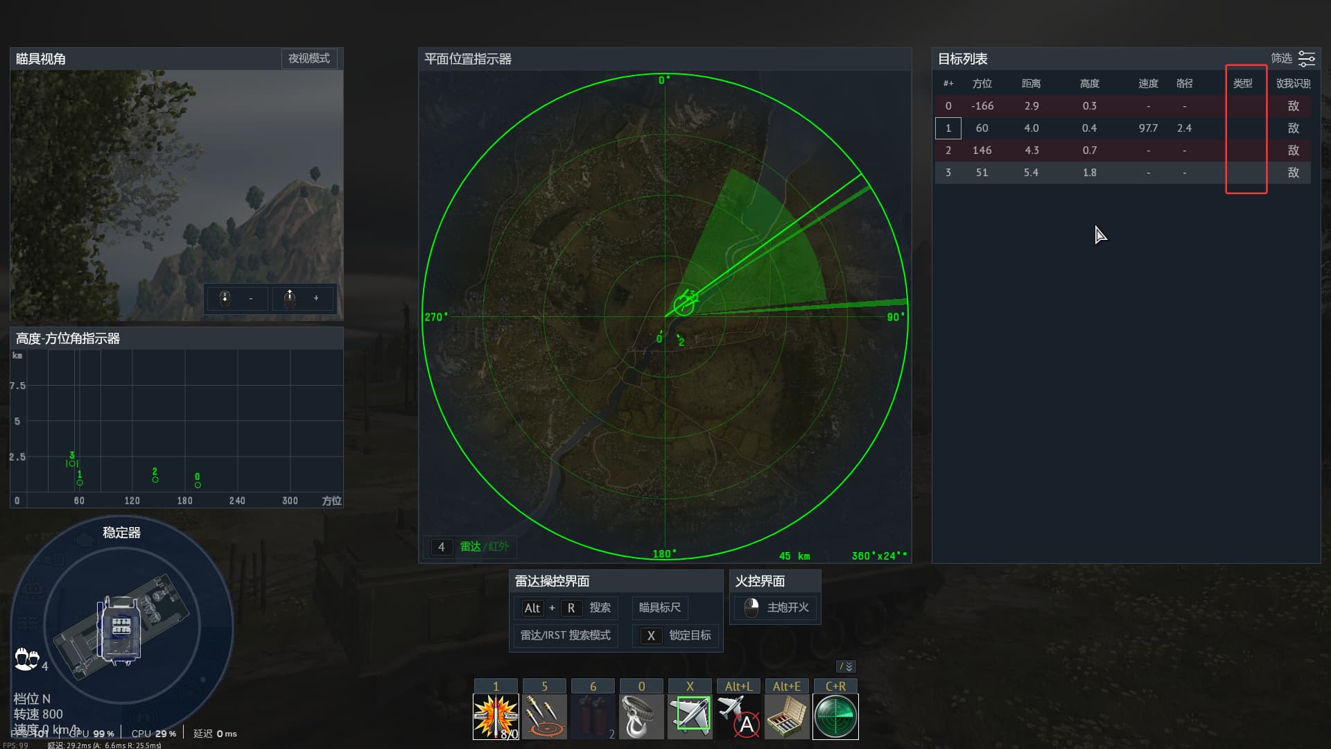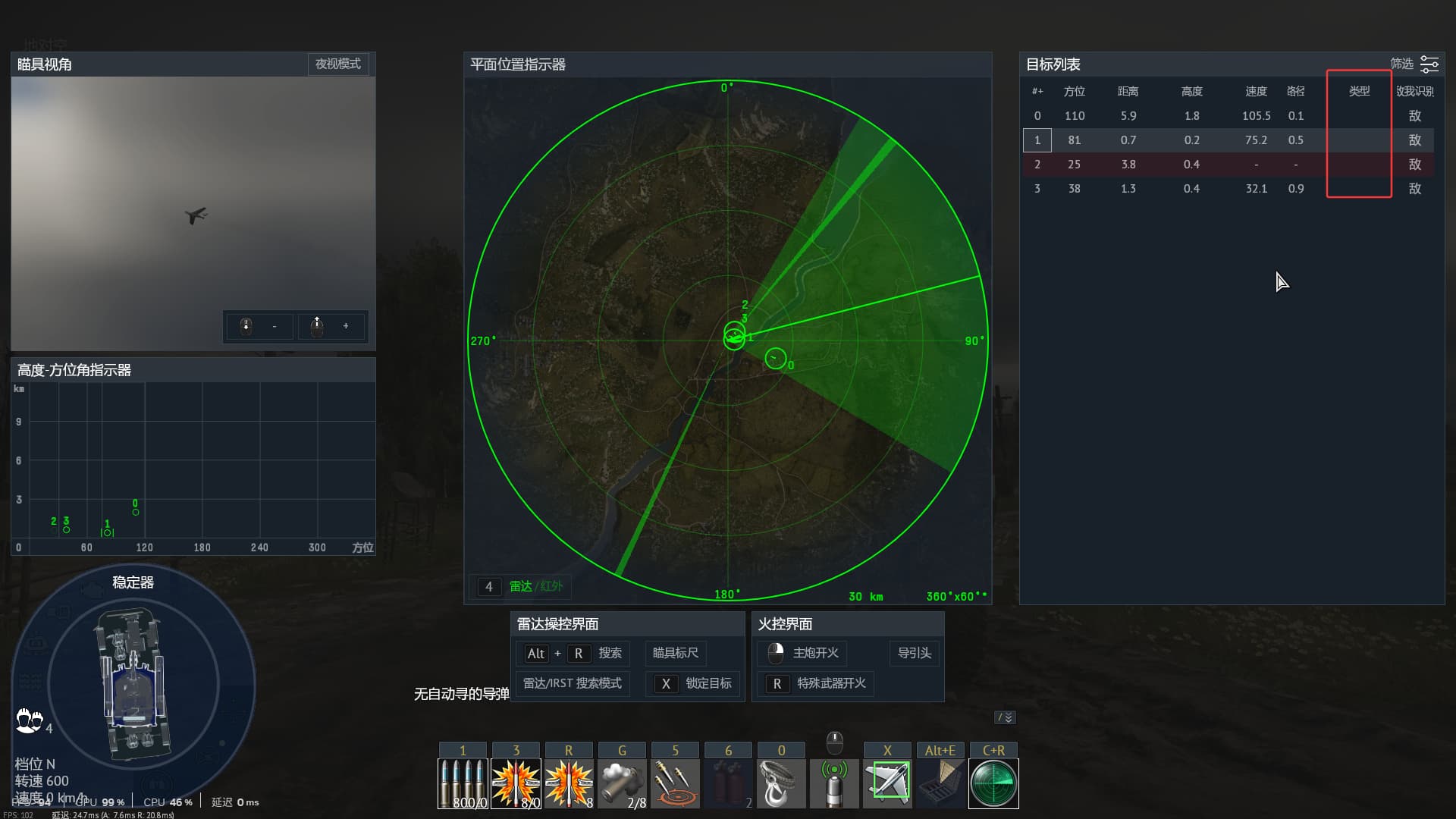 这是HQ17防空车的雷达界面,其使用的AESA雷达完全缺失NCTR功能
