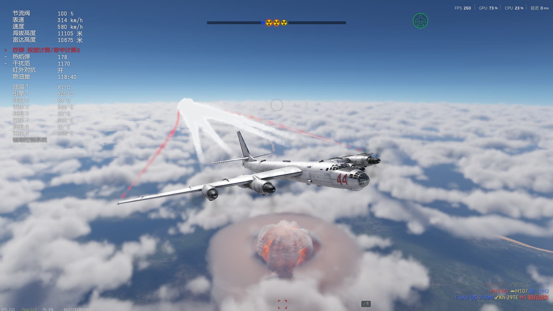 指挥搭载核弹的战略轰炸机与前线轰炸机投入战斗,用 160 万吨当量的核武器为敌人降下核子火焰的洗礼!原子时代的战场瞬息万变,飞行员们需要在电子战 (ECM) 设备的守护下穿透敌方防线,摧毁敌方前线兵站、补给车队,彻底切断敌方补给线,进而影响战局进程,甚至扭转战场形势。您还可以选择深入战线后方,瘫痪敌方机场,摧毁敌军自行火炮、火箭发射车以及战术地地导弹系统,为友军地面部队赢得宝贵的喘息时机,避免前线友军遭遇意外打击!全新反辐射导弹的加入则让飞行员们面对敌方中远程防空系统时更有底气,相较常规压制手段更加高效!当然了,驾驶空优战机夺取战场制空权同样是重中之重。活动模式对出击次数不设限制,尽情展开激战吧!