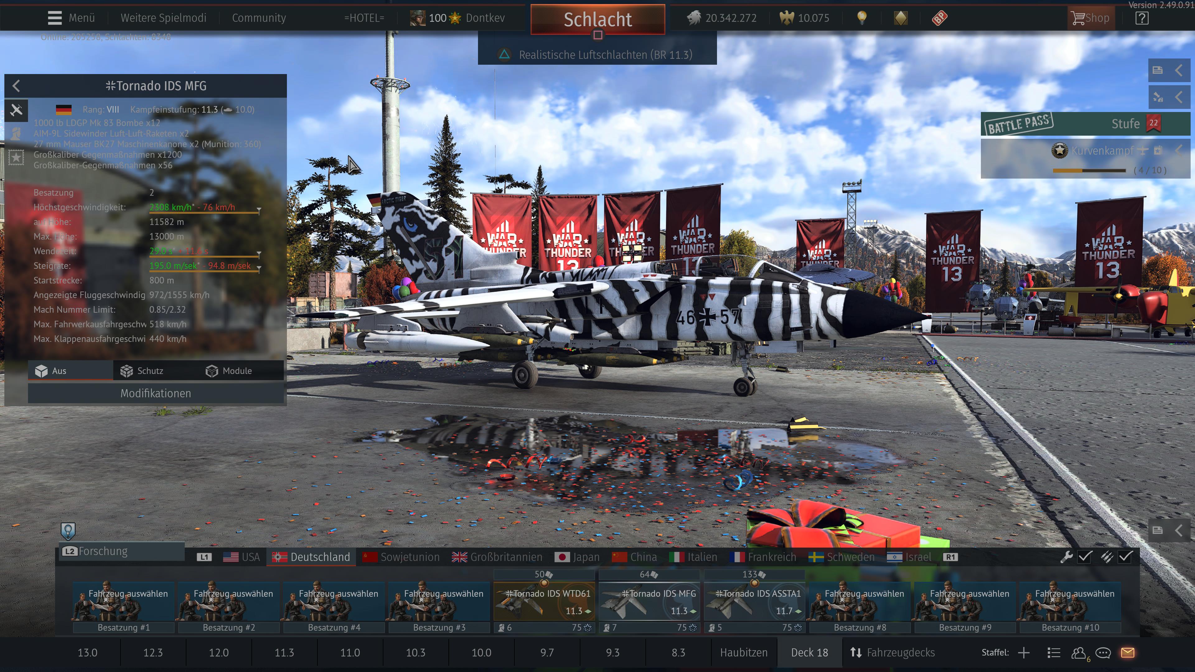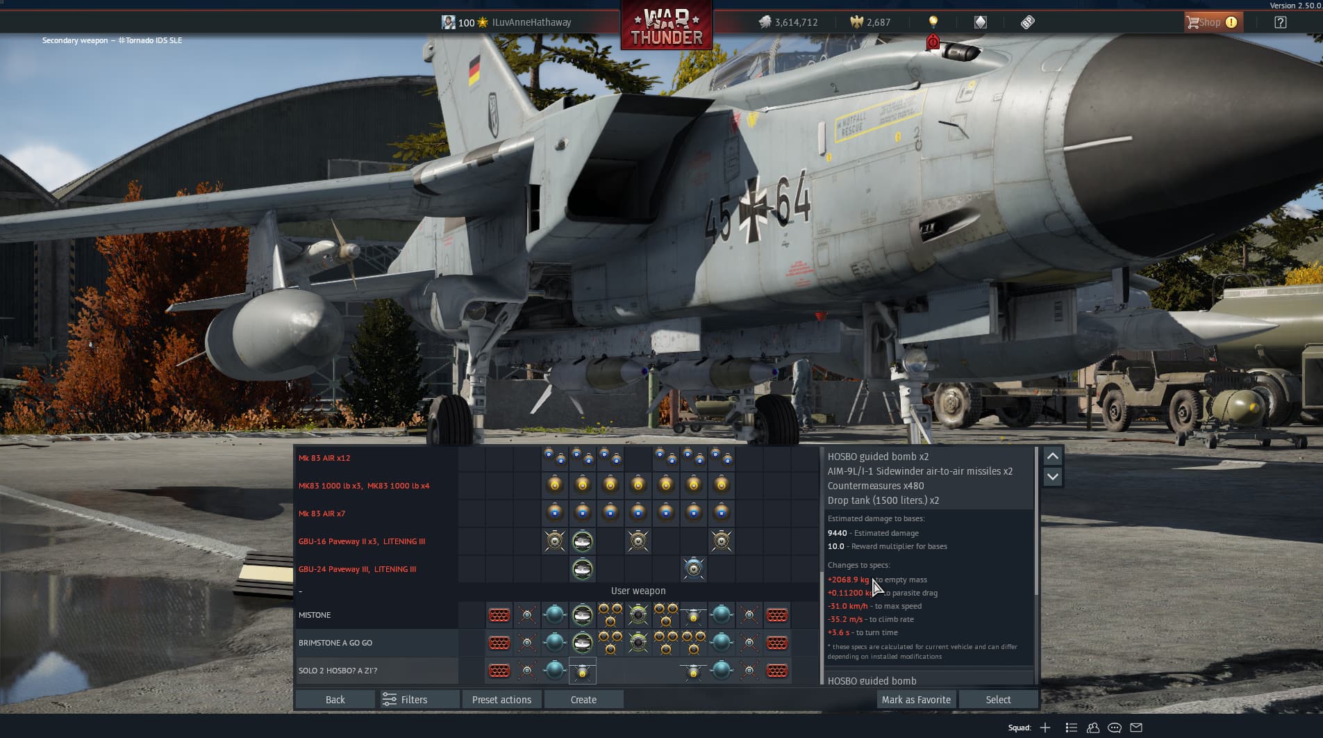 Yes and no. 12.0 would also work up to 13.0. Then there’s the question of the right lineup. The Leopard 2A5 is currently 12.3 and the Puma VJTF is 11.0. So, all in all, it’s completely irrelevant whether it’s 12.0 or 12.3 in GroundRB. The question is whether the Tornado can compete with the big boys? My answer would be more like no. Sure, you can play it and sure, you can get kills. But with the exception of the HOSBO bomb, it’s seriously lacking in range. The LJDAM and, hopefully, the GBU-48 (if my report is accepted) would be the best choices due to their additional GPS guidance. Or you could try your luck flying low with unguided bombs. However, that strategy might not get you anywhere.