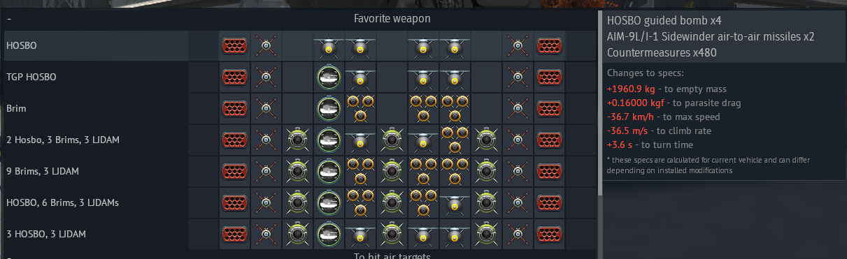 Right now the best loadout it has is 4 HOSBOs only, or alternatively 3 HOSBOs and 3 LJDAMs with TGP for using GNSS lobbing against some SPAAs at the cost of one HOSBO.