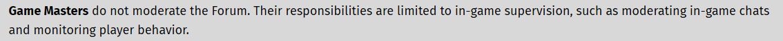 Game Masters do not handle the forum, if you have questions about forum moderation then send a private message to one of the Forum Moderators. Flaggs are also community guided, the Forum Moderators then handle those flags depending on the content of the post, false flaggs can get the one doing them punished instead (you can read about the flag system here: Forum Flagging System Explanation).