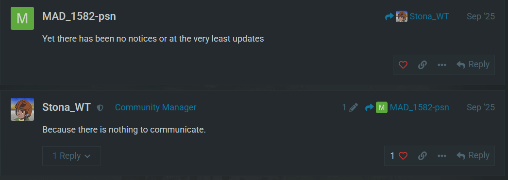 Which is ridiculous, Gaijin is a big enough company that they could outsource this automation if its so impossible to find a single guy to handle this in house. Going a full year since the last dev communication which was essentially “Shut up, we’re busy” and another year since transfers is so frustrating. We get mad because we’ve quite literally been forgotten by gaijin