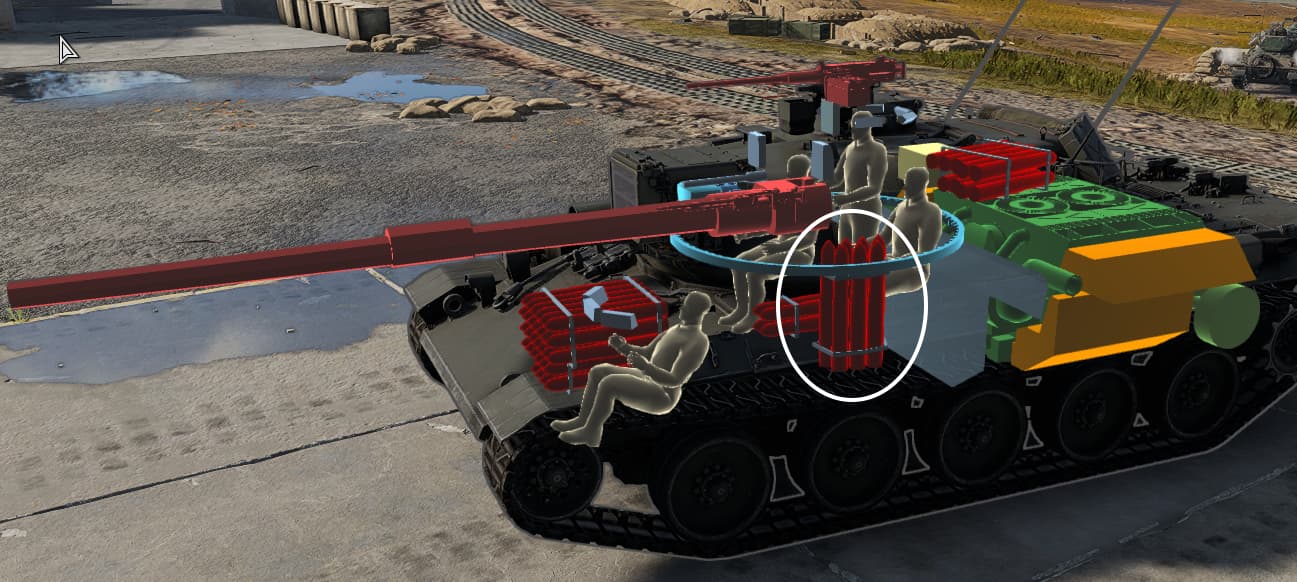 | Ammo rack on turret basket | 7 | 7 | 7 | Located at the left side of the turret in-game |