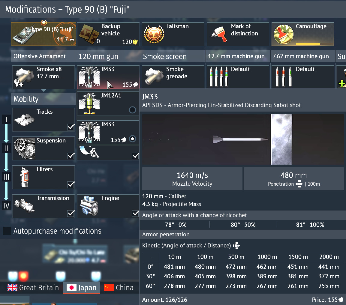 My stats on this vehicle is far from good but is also far brom bad, showing that it’s not a bad vehicle at all, to note, this was my first interation with japanese high tier vehicles. It’s obvious that you need to play this vehicle as an ambusher, the JM33, derivative of the german DM33 is a equivalent battle rating 11.7; see that Leopard 2A5 is loaded with such in-game, and ammo is a balancing factor, is added, removed or modified based on developer’s choice for such.