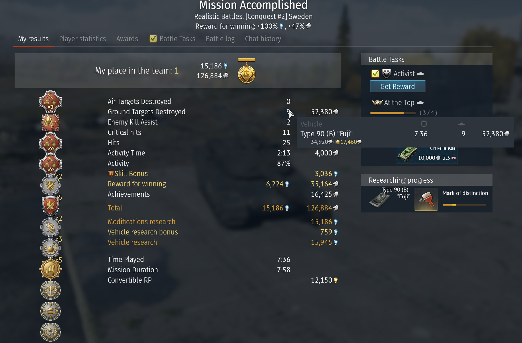 I bought talismans for the Type 16 and ICV during the sale, and they’re much more fun to play at BR 9.7. It’s not hard to penetrate enemies and get kills, and at that BR, many opponents still lack speed and good thermal optics compared to the Japanese vehicles. I managed to finish grinding the Type 10, TKX and TKX (P) really quickly using them.