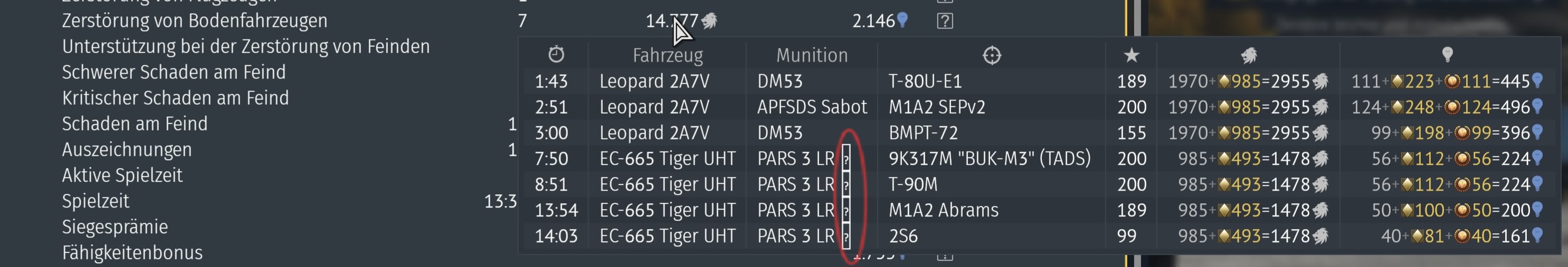 Erscheint auch im Datamine. Das ist der normale, öffentliche Datamine von Gszabi - Code Linie 307, da steht die Korrektur von mir: “Verliehen für das Markieren eines feindlichen Fahrzeugs, das im Anschluss von einem Teammitglied zerstört wurde.”
