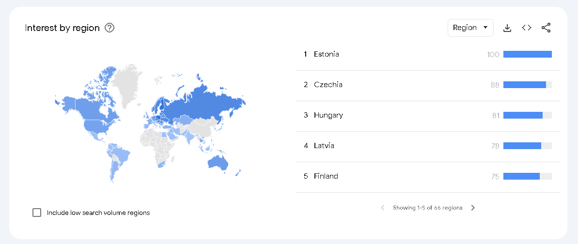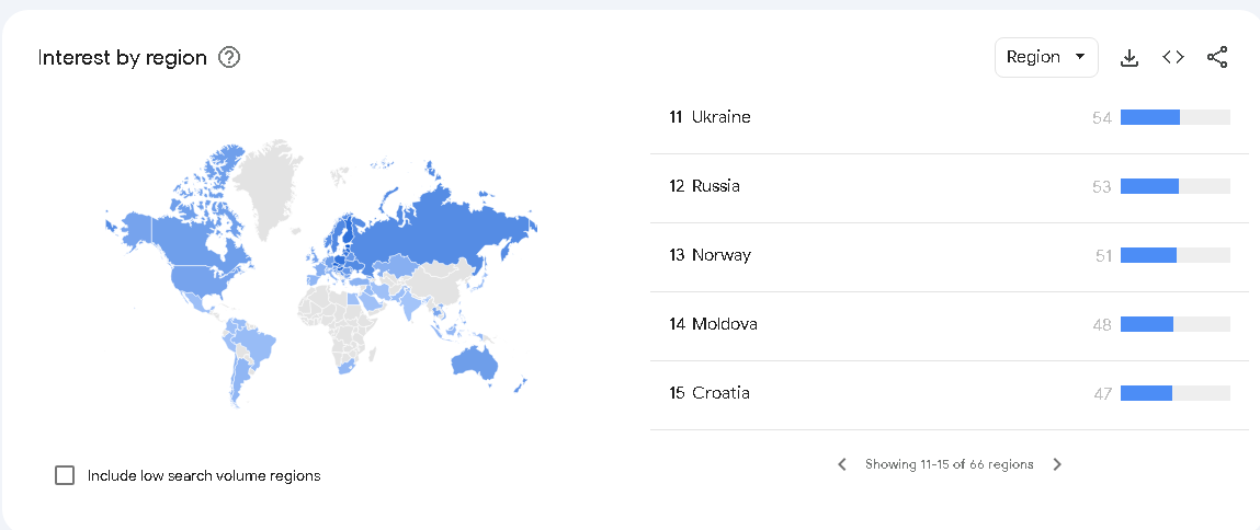 Back in July '23, I made a post arguing that the Ukrainian player interest in the game was exceptionally high. I even provided a Google Trends screenshot as proof showing that Ukraine had the highest search interest in the game compared to other nations. However, it’s now December 2025, and the situation has shifted somewhat:
