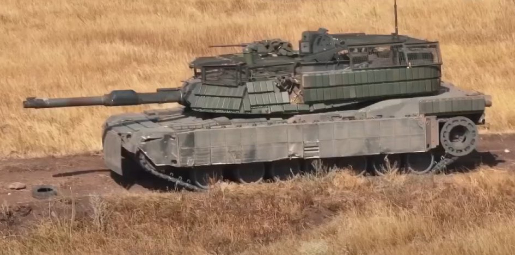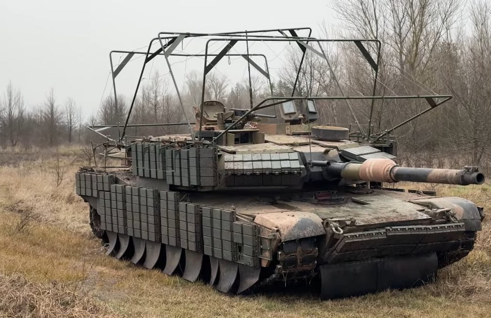 Completely engulfed in K-1 ERAs (even T-64BV style turret cheeks) and folding cope cage