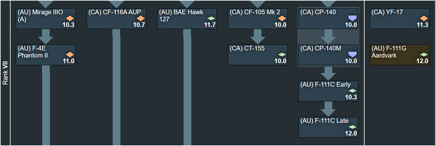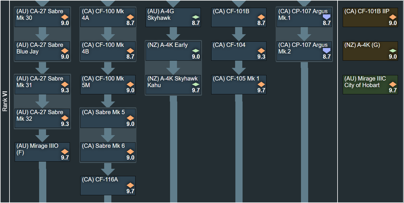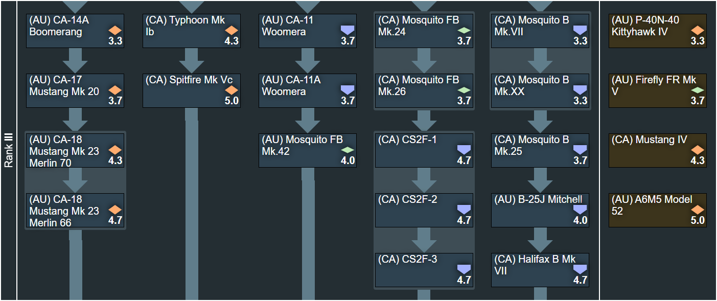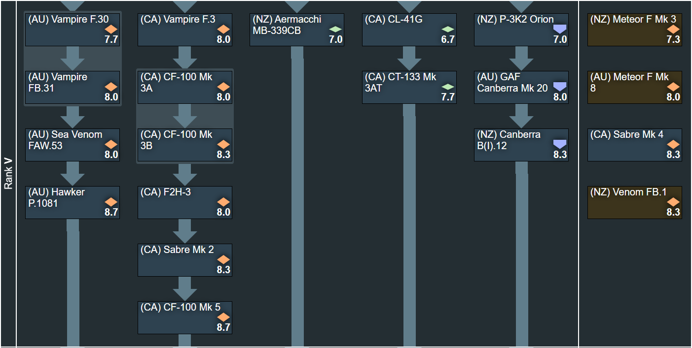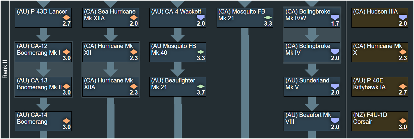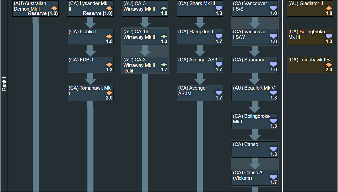 Let me start this post by stating this: In the researchable tree of this suggestion we have 28 domestically designed aircraft, 79 domestically modified and/or built and/or unique to the operator nation aircraft, and 11 of the so-called “copy paste” aircraft. The events/premiums section adds a further 6 unique aircraft. So with that in mind, what is the suggestion about? There are a great many people on this game that aren’t happy with the current treatment of Canada and Australia in game, being split up in to multiple tech trees forcing us to not only grind multiple tech trees to get our vehicles, but more importantly preventing us from building lineups with them. This tree will aim to help visualize that together these nations can bring enough content to the game to be worth adding.