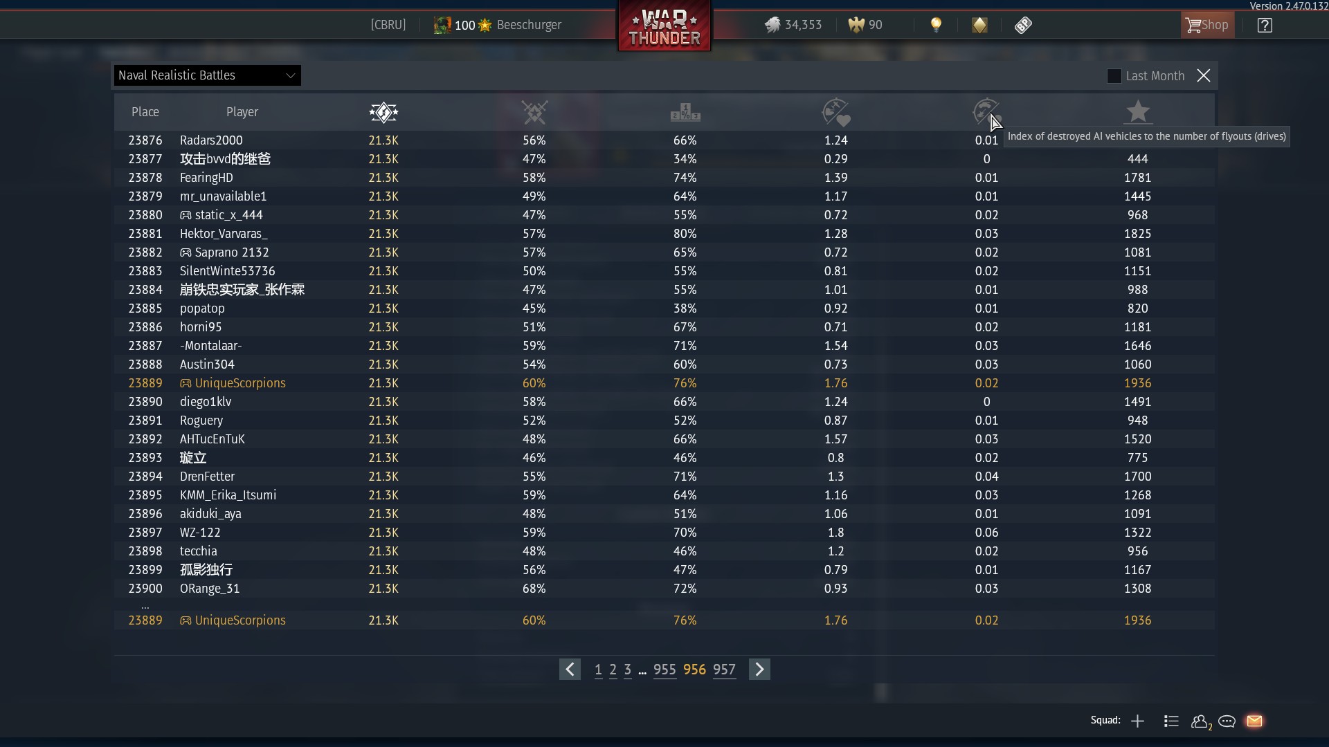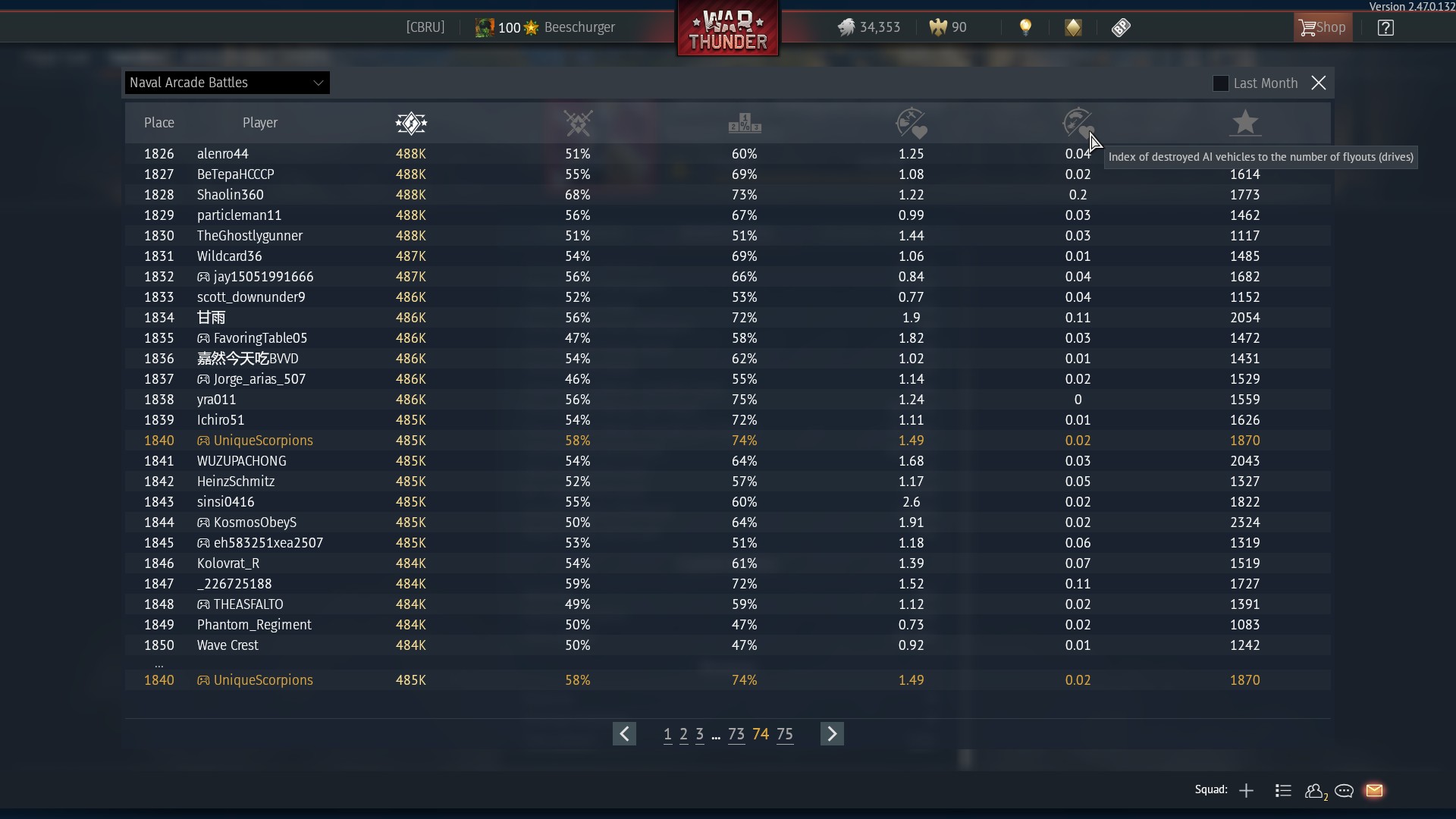 Which is shown by the aforementioned AI kills index. Meaning that 0.02 of your naval kills are bots.