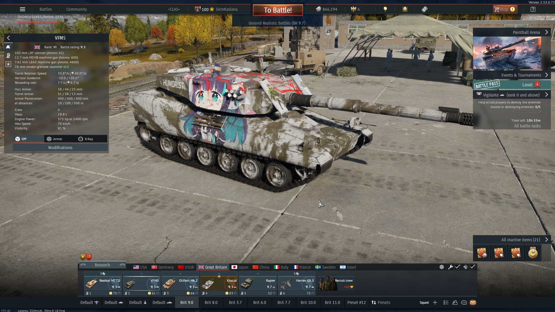 - A bug where the vehicle research bonus bar would display incorrectly if there was no visible premium, squadron or special vehicles in the tree has been fixed. For example, this issue occurred in the Japanese helicopter research tree. (Report).