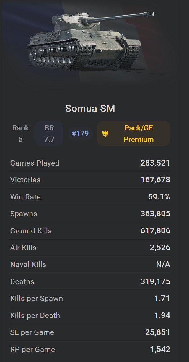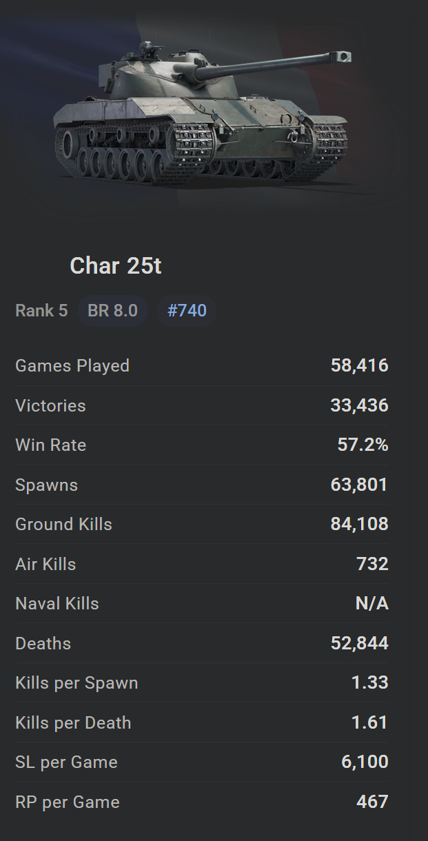 Yes I know French players are on average one of the best and generally do better in vehicles and that it is a older event based vehicle hence only experienced players use it, but you cant be serious asking for a vehicle that is getting 1.73 KD to go down in BR.