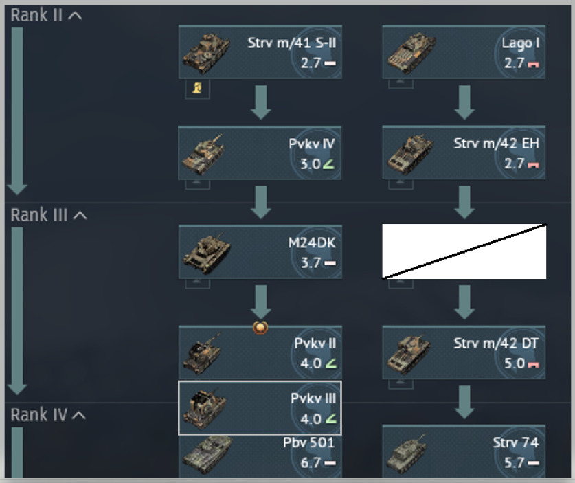 Pvkv III Should get Slpprj m/49 as it can fire it (Bug report) and it would help defeat KV-1s then make it 4.0 / 4.3. Bam fast reload 57mm with 179mm pen. A complete side-grade to the Pvkv II. Then move the Pvkv IV to where the Pvkv III currently sits and change the Pvkv IV to a Tank destroyer.