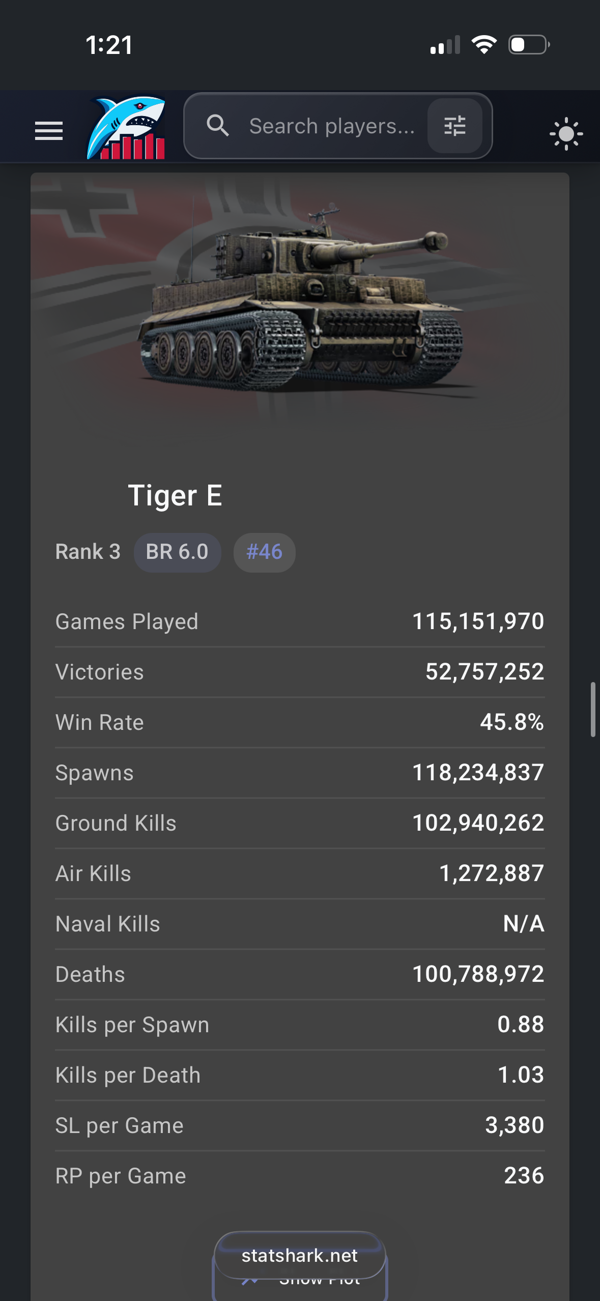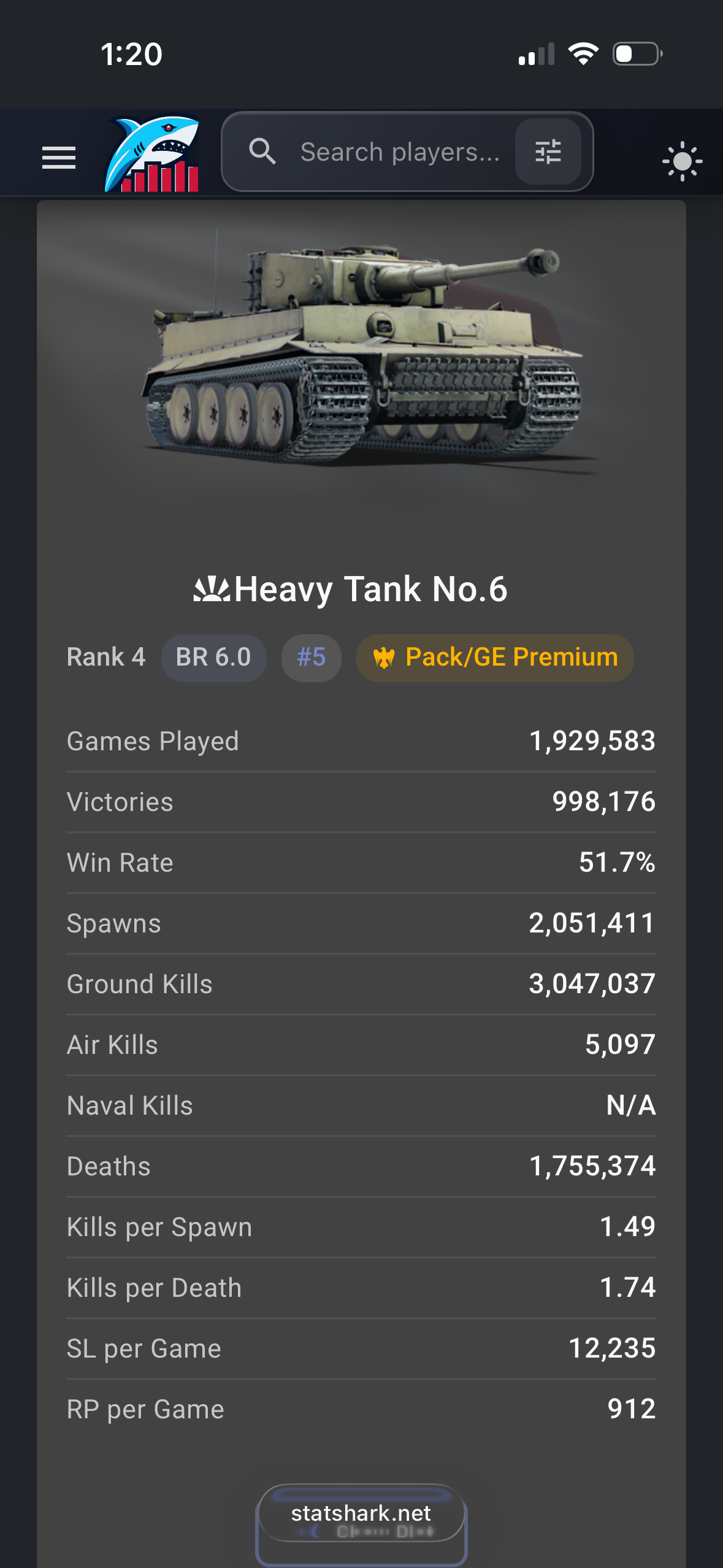 Considering the Tiger E is a TT tank played by lower level players and is better in capability, doesn’t mean Heavy tank no.6 is doing particularly well.
