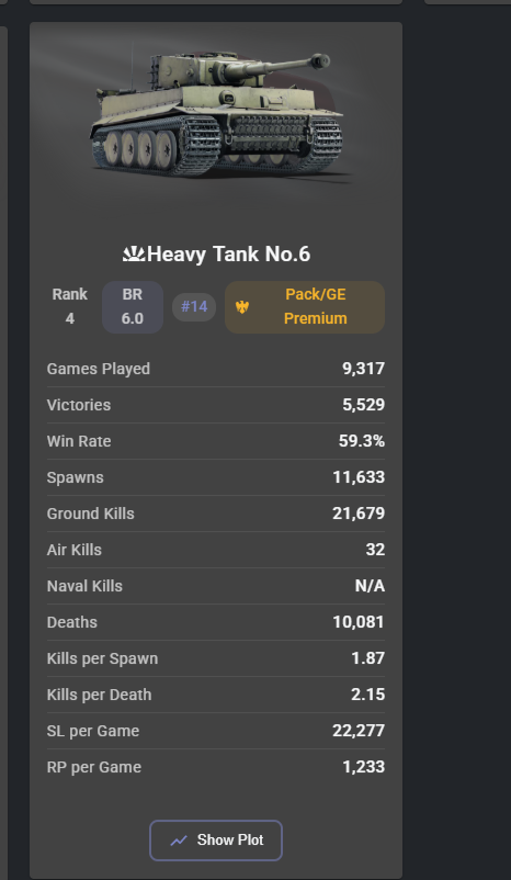 Sub 2 ksp doesnt speak for high skill . I played all of them and i cant rlly be asked the all perform quite the same . My other stats are just worse since i was a worst play when i played them . But yes the heavy tanks is worse . Then the Tiger E so is the Tigris adn that tank performs better . No smoke and the mine launchers are minor stuff you can just play around with .