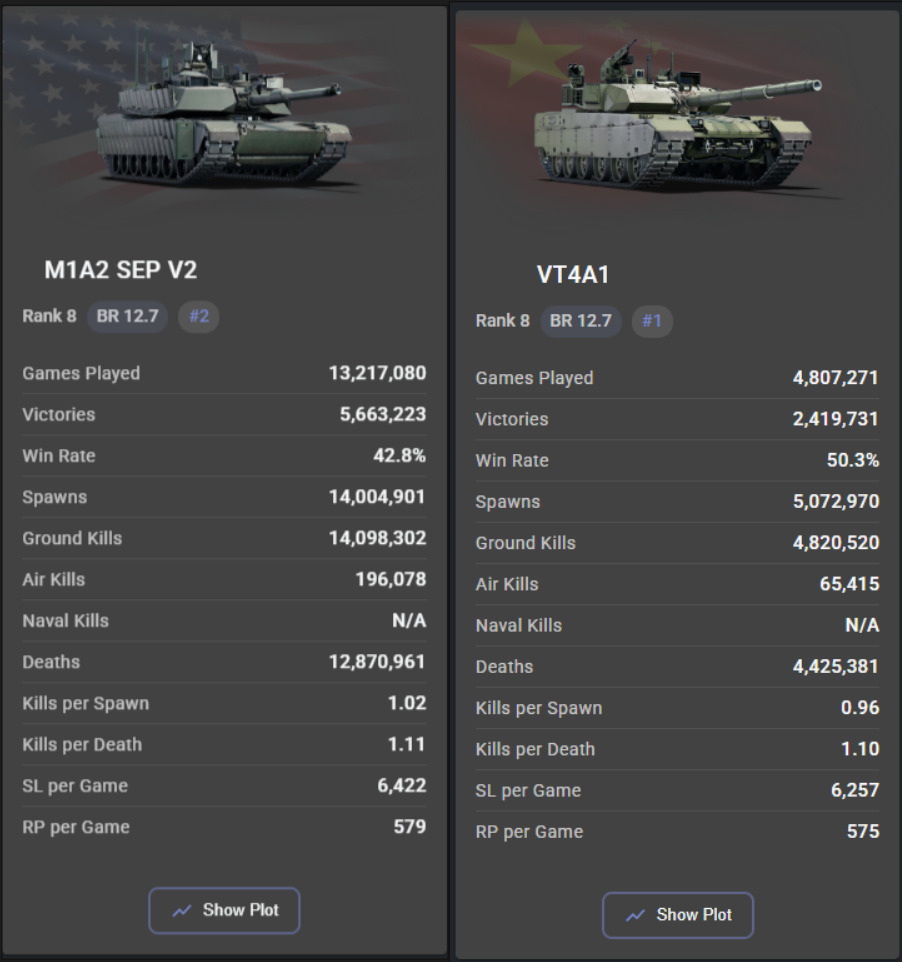 It’s pretty obvious what is wrong with this picture bro, one vehicle is played by mostly USA mains and one is played by mostly a much better player base in terms of player skills. Not only that US mains are bad at the game, they also have bad social skills since most of them are permanently chat-banned bro